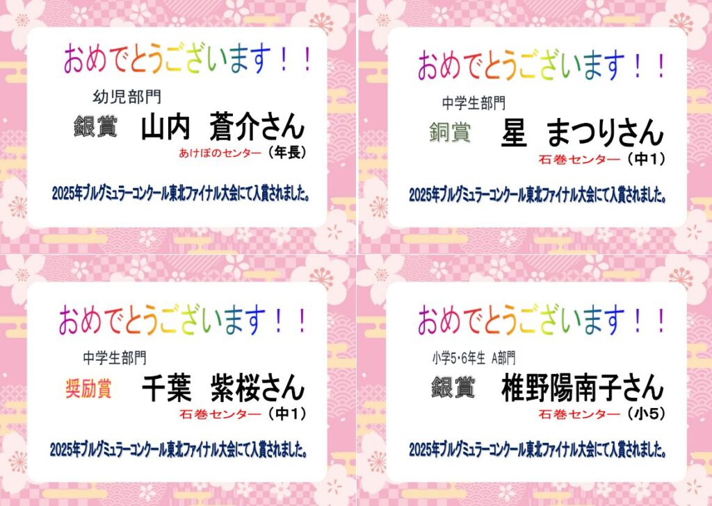 2025年ブルグミュラーコンクール東北ファイナル大会にて入賞された生徒さんを紹介いたします♪